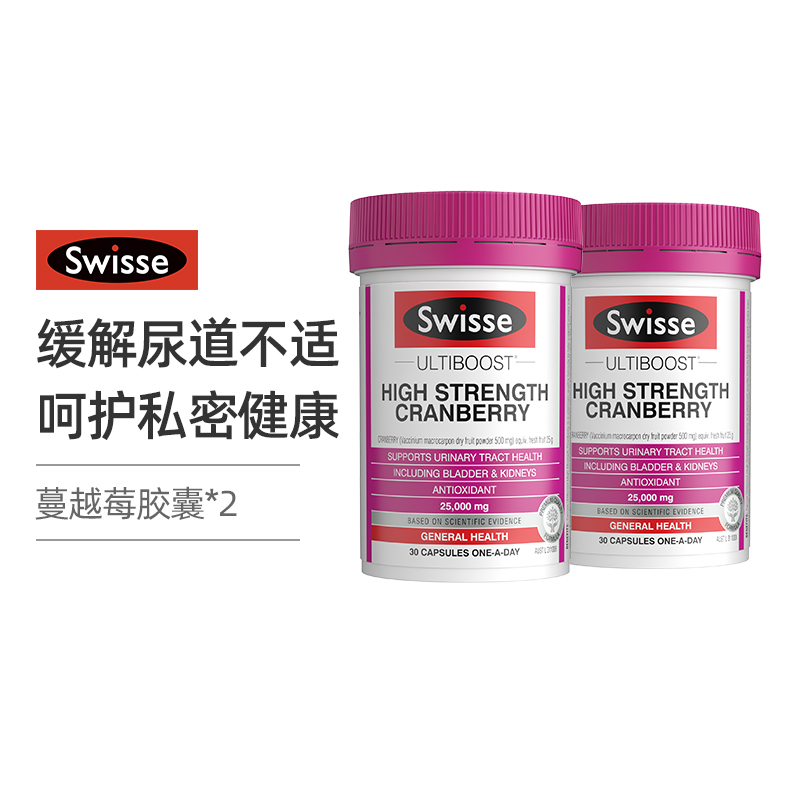 【2瓶】Swisse斯维诗 蔓越莓精华胶囊25000mg 30粒/瓶 女性健康私处护理