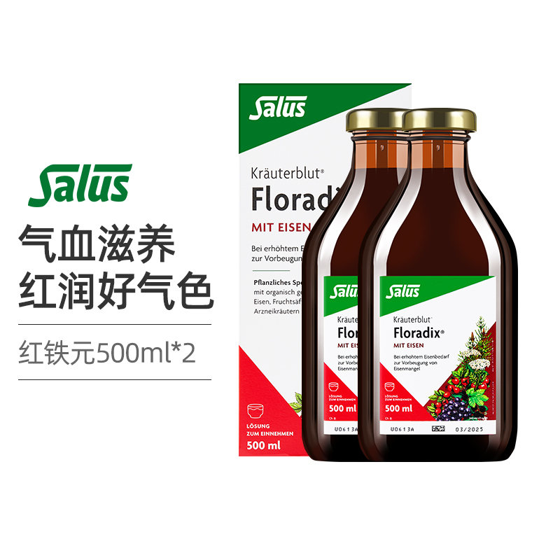 【2瓶】Salus 莎露斯 Floradix 德国铁元 补铁养血营养液 红色版 500ml/瓶*2瓶