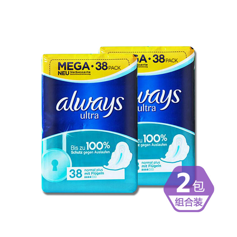 【2包】德国进口Always超薄日用卫生巾Ultra系列38片X24厘米
